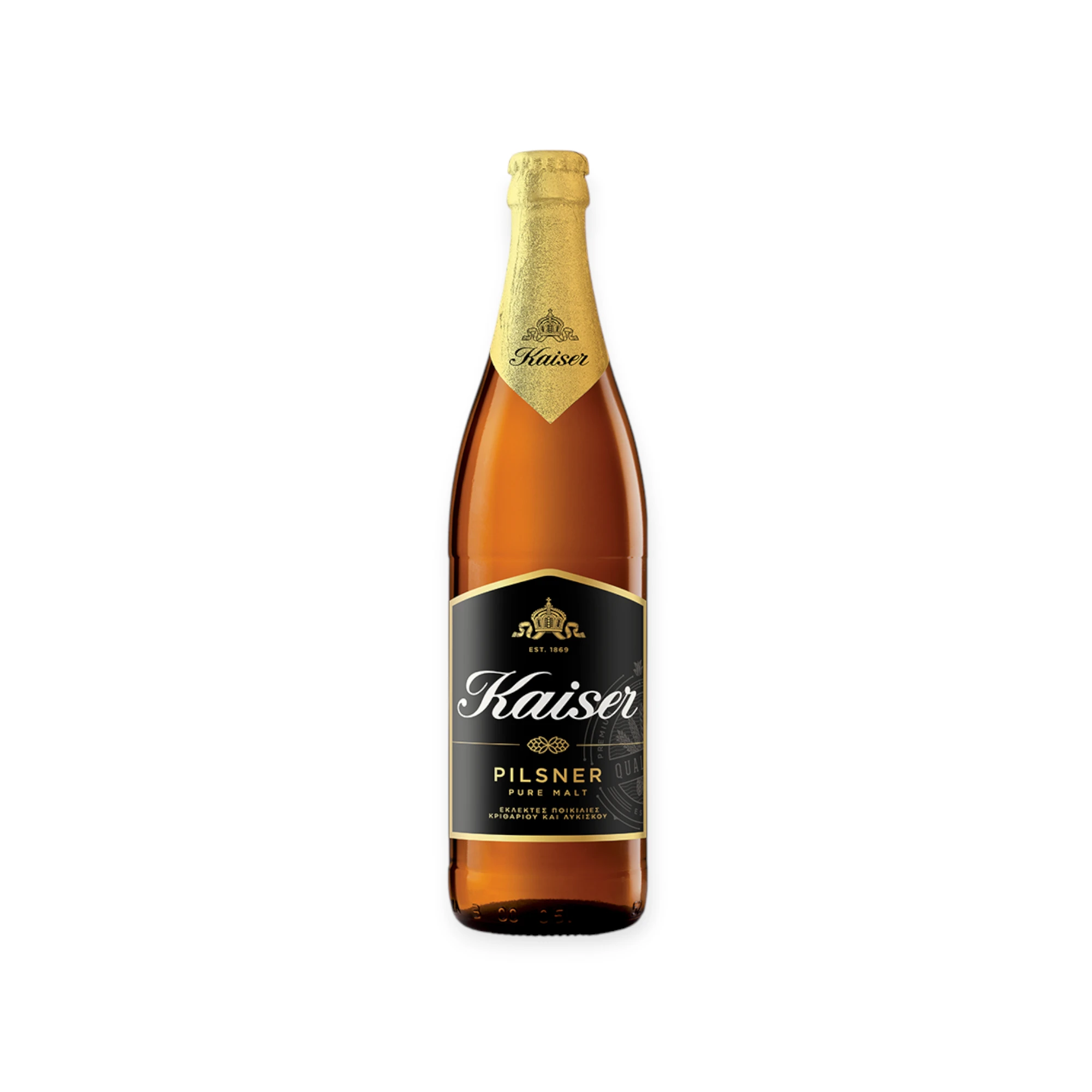 Pilsner μπύρα που διαφέρει χάρη στην εξαιρετική γεύση και ποιότητά της. Η μπύρα Kaiser παρασκευάζεται από εκλεκτές ποικιλίες κριθαριού και λυκίσκου που ζυμώνονται και ωριμάζουν αργά. για να της δώσουν τη γεμάτη και μεστή γεύση της πραγματικής μπύρας Pils. όπως τη θέλει η γερμανική φιλοσοφία και παράδοση. Διακρίνεται για τη μεστή γεύση. τον έντονο χαρακτήρα βύνης και λυκίσκου που της προσδίδει την χαρακτηριστική της πικράδα και το βαθύ χρυσαφί χρώμα της. Είναι ταυτισμένη με την υψηλή ποιότητα και προσφέρει μια ξεχωριστή εμπειρία με τη γεμάτη γεύση της. Η παραγωγή της στην Ελλάδα ξεκίνησε το 1976 και συνεχίζεται μέχρι σήμερα με την ίδια αυστηρή γερμανική φιλοσοφία και παράδοση που απαιτεί η σχολή «Pils». Παράγεται στη Θεσσαλονίκη από τη Μύθος Ζυθοποιία και διατίθεται στην Ελληνική αγορά σε πλήρη γκάμα συσκευασιών. όπως φιάλες. κουτάκια. πολυσυσκευασίες και βαρέλι. Η εναλλαγή της αντίθεσης του μαύρου με το λαμπερό χρυσό χρώμα προσδίδει στο κύρος και την υψηλή εικόνα της και αναδεικνύει την ποιότητά της.