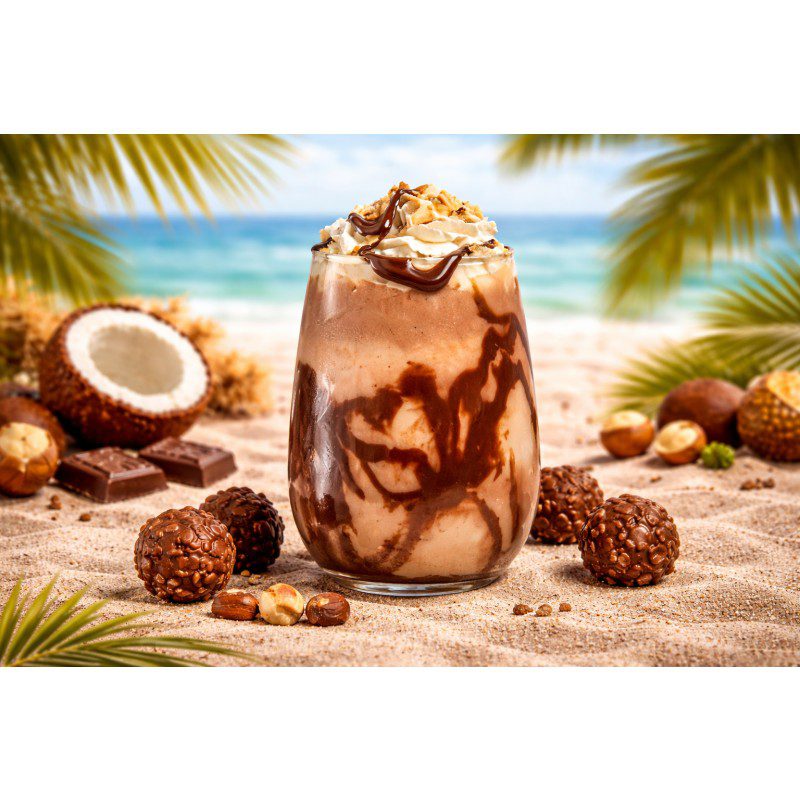 Η αγαπημένη γεύση Ferrero σ’ ενα παγωμένο milkshake με χαρακτηριστικό άρωμα φουντουκιού και γκοφρέτας.