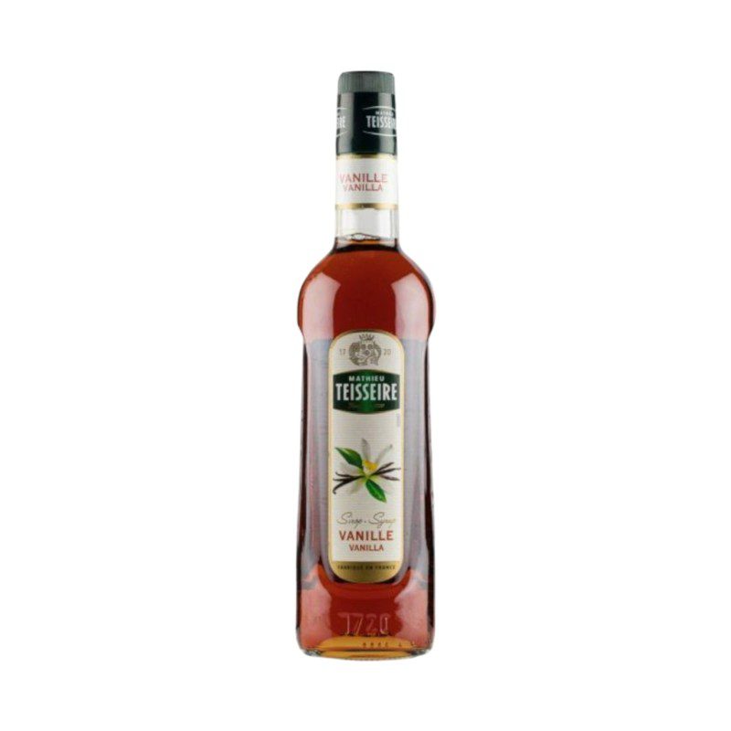Ποικιλιακή σύνθεση: Ζάχαρη. Περιοχή: Γαλλία. Γευστικά χαρακτηριστικά: Το σιρόπι βανίλιας Mathieu Teisseire προσφέρει μια γεύση γλυκού αμύγδαλου και βανίλιας που είναι ταυτόχρονα διακριτική αλλά και εκλεπτυσμένη. Με το απαλό και λεπτό άρωμά του και την πραγματικά πολύπλευρη γεύση του. αυτό το σιρόπι φέρνει μια νότα φινέτσας στους καφέδες. τις σοκολάτες και τα μιλκσέικ σας. Ταιριάζει υπέροχα και με κοκτέιλ με ή χωρίς αλκοόλ. αναψυκτικά και τσάγια.