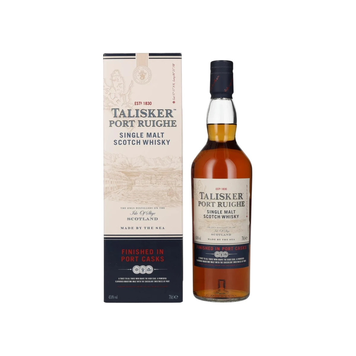 Το Talisker είναι το μοναδικό αποστακτήριο που βρίσκεται στο νησί Skye και λειτουργεί από το 1830. Η θαλασσινή αύρα και η έντονη τύρφη δίνουν στο Τalisker την έντονη «θαλασσινή» προσωπικότητα ιωδίου. ρεικιών και πιπεράτη επίγευση. Αποτελεί ένα από τα καλύτερα ουίσκι στον κόσμο. Το Talisker Port. όπου δεν αναγράφεται η ηλικία ωρίμασης. πήρε το όνομα του από την περαιτέρω ωρίμαση του ουίσκι (η αρχική ήταν σε βαρέλια αμερικάνικης και ευρωπαϊκής δρυός) σε βαρέλια από γλυκό κρασί Port.Η χαρακτηριστική αρμυρή αίσθηση συνδυάζεται με ώριμα εσπεριδοειδή και λευκή σοκολάτα. Στο στόμα είναι γλυκόπιοτο. με δαμάσκηνα. μόκα να εναλλάσσονται σε έντονο καπνιστό φόντο. Η επίγευση είναι μακρά και εντυπωσιακή.Συνδυάστε το με κανταΐφι. τρουφάκια λευκά και γάλακτος και ξηρούς καρπούς.