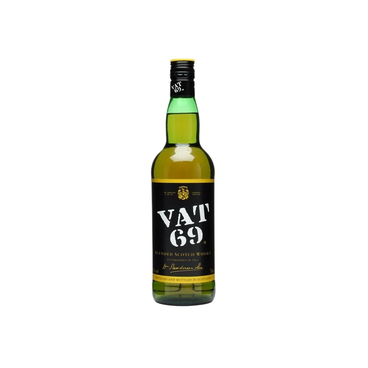 Από τα πιο διάσημα blended Ουίσκι. το VAT 69 δημιουργήθηκε πρώτη φορά το 1882 από τον William Sanderson στο Leith της Σκωτία. Το όνομα δεν είναι τυχαίο αφού ένα πάνελ από ειδικούς γευσιγνώστες δοκίμασε 100 διαφορετικά δείγματα blended ουίσκι για να επιλέξουν το 69Ο δείγμα ως το καλύτερο. Χαρμάνι από 40 διαφορετικά malt και grain ούσκι.Απαλό. ισορροπημένο με μπαχαρικά. καραμέλα και δημητριακά. Στο στόμα ευχάριστο με πικάντικο τελείωμα.Ένα απλό και οικονομικό blended. ιδανικό για cocktails.